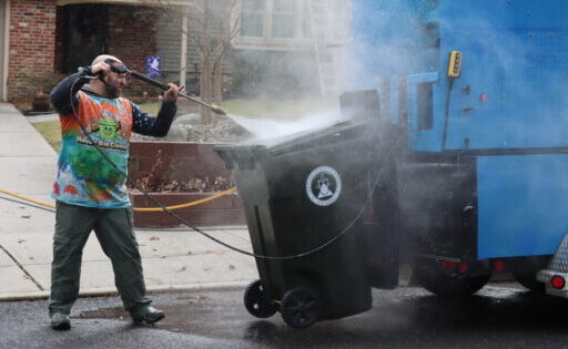High-pressure hot water (up to 200° and free of chemicals) washes your can with a 360° head. Stubborn residue is removed manually. Our eco-friendly disinfectant kills the bacteria that cause odors. Removing bacteria from your bins is just as crucial as sanitizing.